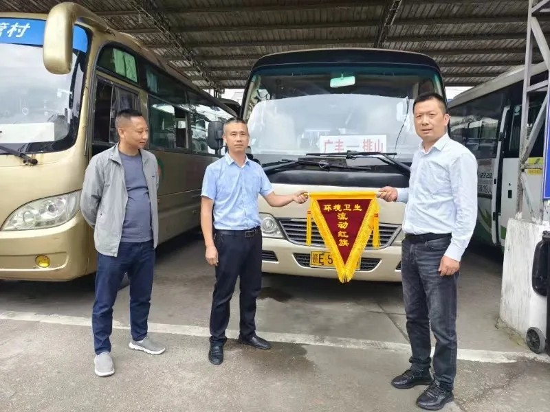 6月4日上午,上饒汽運(yùn)廣豐片區(qū)副經(jīng)理?xiàng)铋L(zhǎng)勇把鮮紅的文明衛(wèi)生流動(dòng)紅旗送到了各片區(qū)先進(jìn)車輛駕駛員手中。接過紅